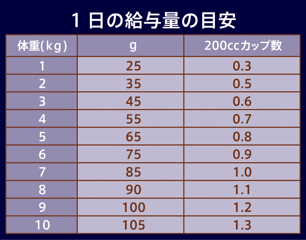 本品は、ペットフード公正取引協議会の定める分析試験の結果、総合栄養食の基準を満たすことが証明されています。
