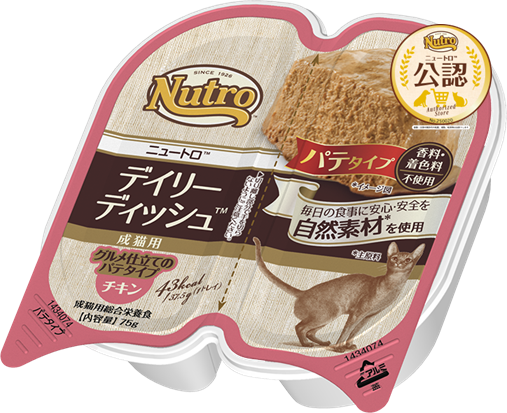 厳選自然素材にこだわった、毎日の食事に最適なウエットフード。高品質な肉や魚を第一主原料に使用し、抜群のおいしさを実現。少量使い切りタイプで新鮮な香りとおいしさで食欲をそそります。チキン味のなめらか食感で食べやすいパテタイプ。