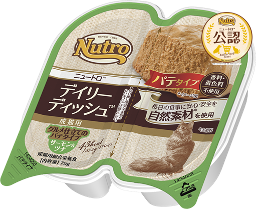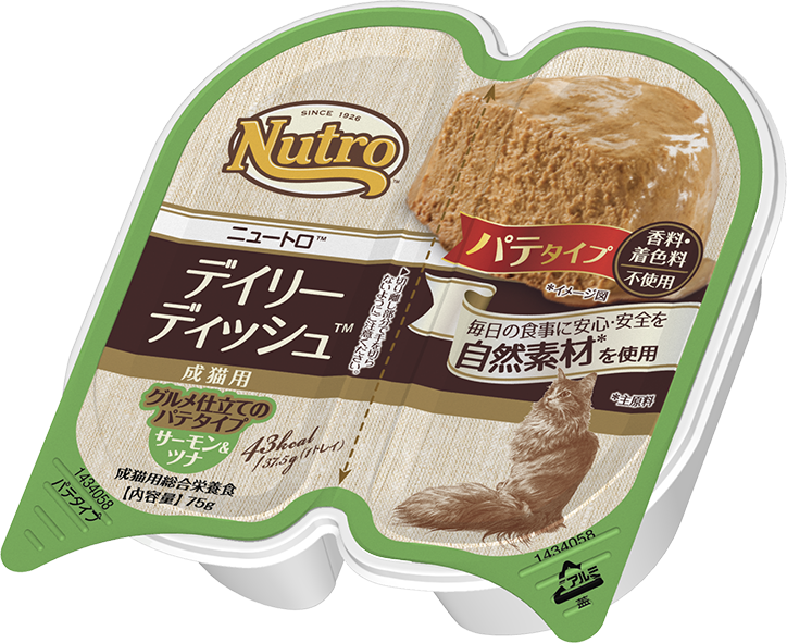 厳選自然素材にこだわった、毎日の食事に最適なウエットフード。高品質な肉や魚を第一主原料に使用し、抜群のおいしさを実現。少量使い切りタイプで新鮮な香りとおいしさで食欲をそそります。サーモン&ツナ味のなめらか食感で食べやすいパテタイプ。