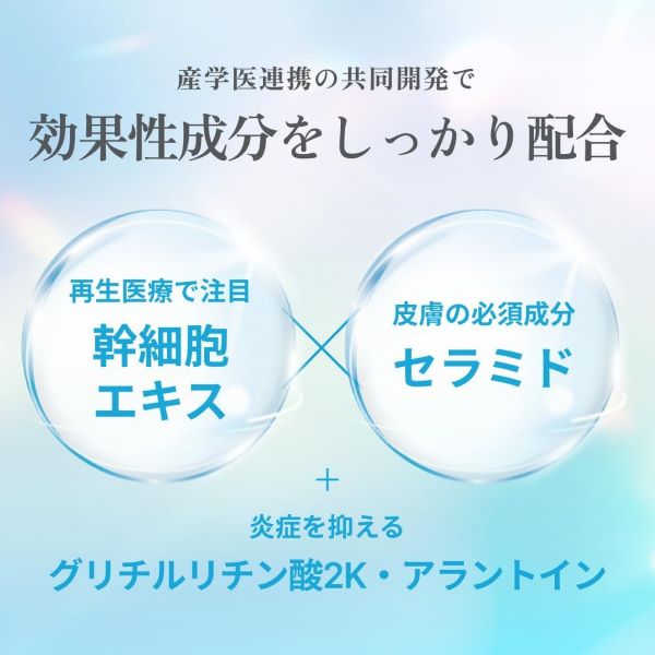 水、リンゴ果実培養細胞エキス、グリチルリチン酸2K、スフィンゴ糖脂質、アラントイン、イノシトール、トレハロース、グリセリン、イソマルト、タウリン、リシンHCl、アラニン、アルギニン、ヒスチジンHCl、セリン、プロリン、グルタミン酸、トレオニン、バリン、ロイシン、グリシン、イソロイシン、フェニルアラニン、ジラウロイルグルタミン酸リシンNa、プロパンジオール、キサンタンガム、ミリスチン酸ポリグリセリル―10、カプリルヒドロキサム酸