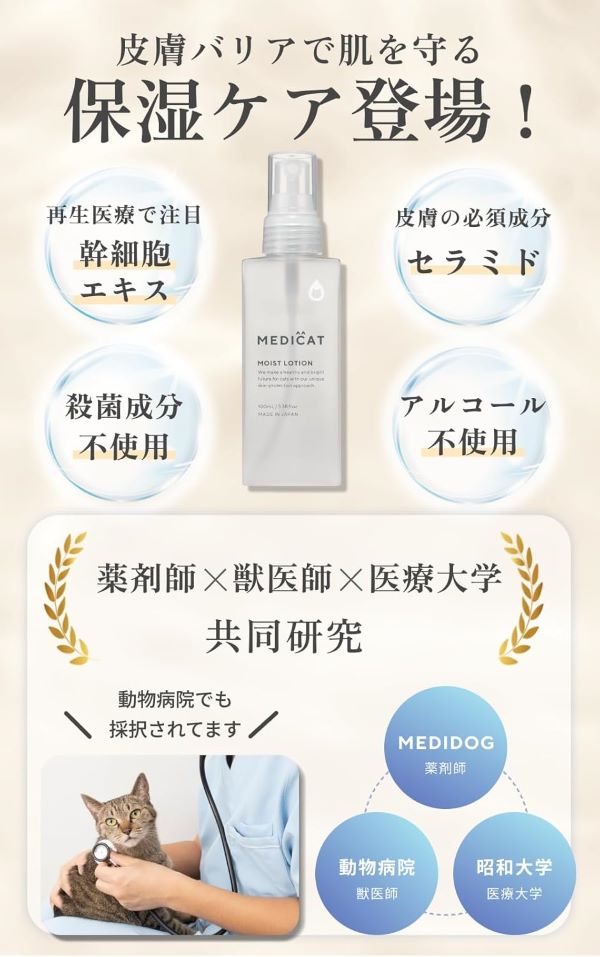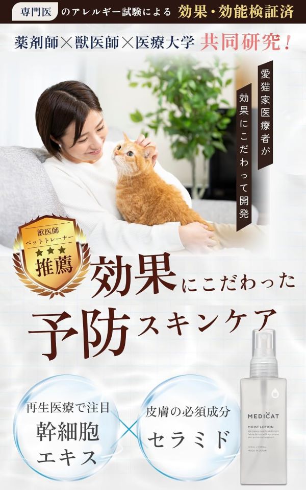 ・薬剤師×獣医皮膚科専門医×昭和大学の共同研究開発。猫を愛する医療チームが本気で猫の皮膚を徹底研究し開発しました。