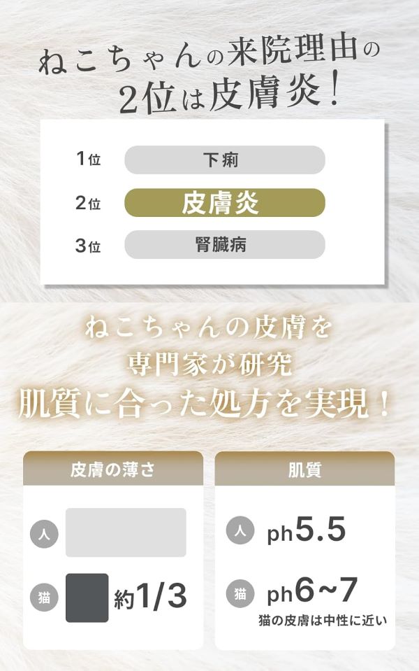 ・猫の皮膚は人間の1/3の薄さといわれます。そんな超敏感肌な猫ちゃんのための高保湿スキンケア。