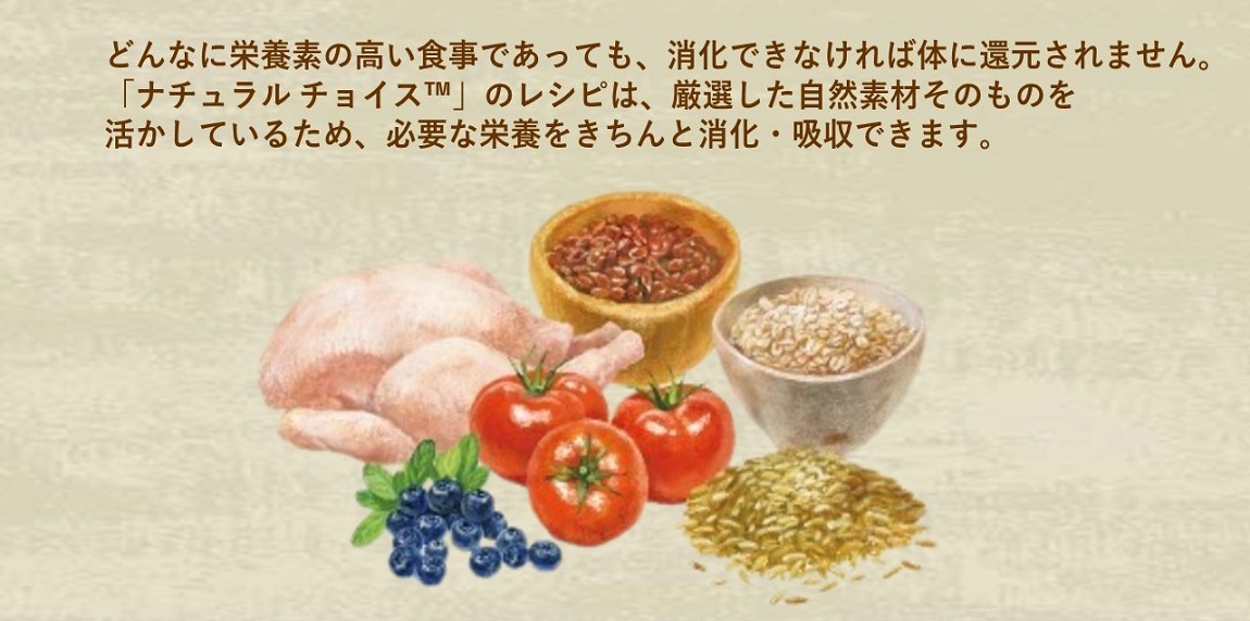 愛猫の健康的で幸福な毎日を何よりも第一に考えたい。だから「ナチュラル チョイス™」は、自然素材にこだわり、安全かつ安心へ配慮した最適な栄養バランスを持ち、素材本来のおいしさ満点のフードを常に追求しています。